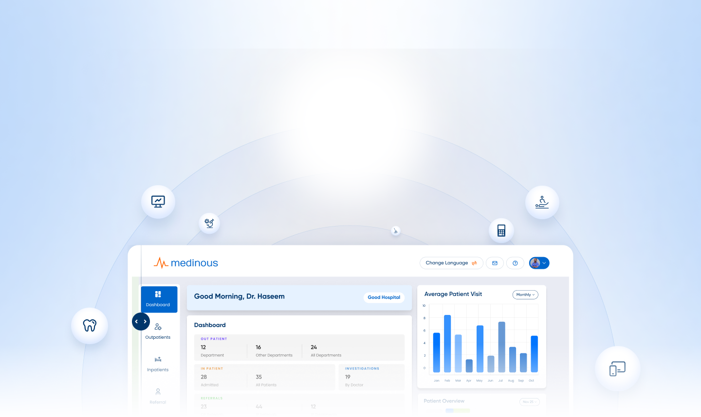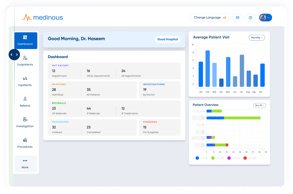 With multiple clinical, administrative and back-office modules Medinous hospital management system is a one stop solution for all your operational requirements