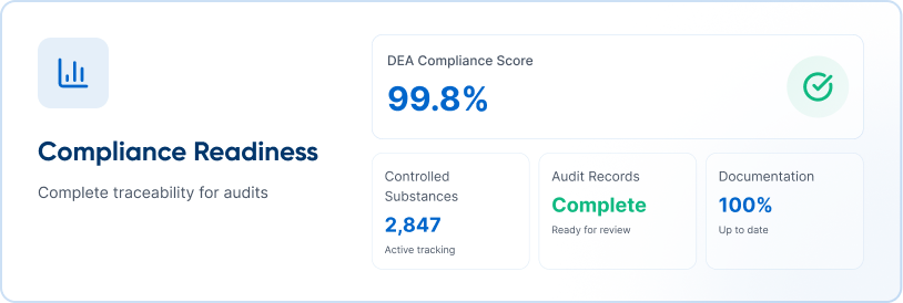 Batch and expiration tracking supports safe dispensing and minimizes write-offs.