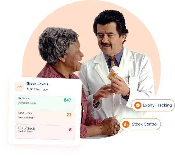 Unified view of stock across warehouses, pharmacies, and dispensing points.
