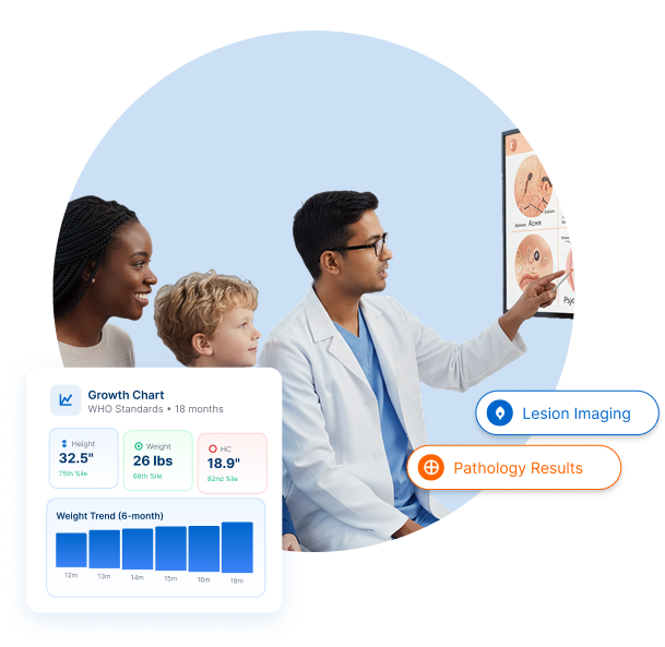 Capture dermoscopy and clinical photography directly within the patient record, link specimens to pathology orders, and track results through follow-up workflows.