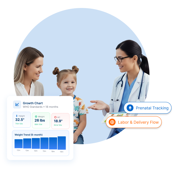Coordinate preventive checkups, immunizations, sick visits, developmental tracking, and pediatric revenue workflows — all within a connected clinical platform designed for fast-moving child healthcare environments.