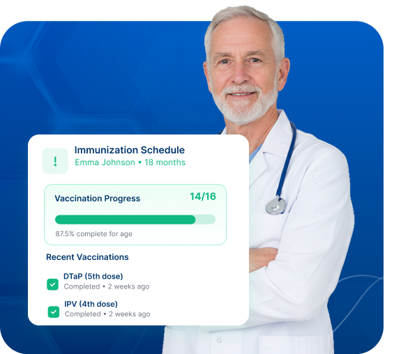 Consolidated immunization histories, BMI tracking, and longitudinal growth patterns remain accessible within the patient record — helping teams maintain proactive oversight.
